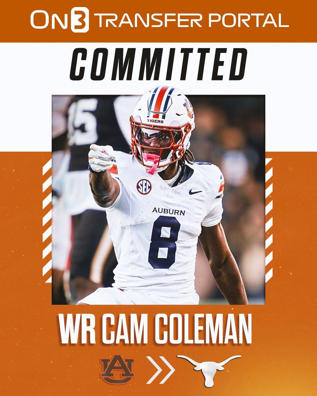 Texas made a major splash in the transfer portal over the weekend, landing two of the top offensive talents available: wide receiver Cam Coleman from Auburn and running back Hollywood Smothers from NC State, who flipped from Alabama after committing there Jan. 5.